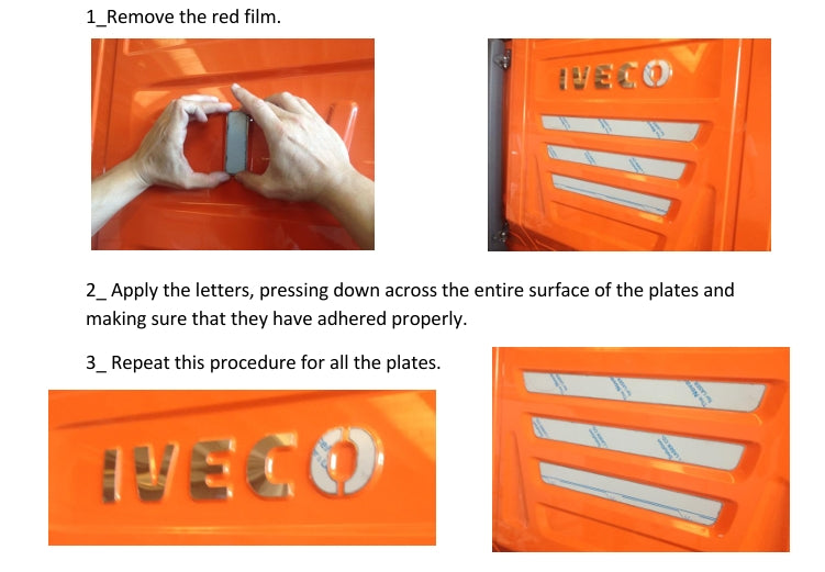LOGO IVECO PIU 4 RIVESTIMENTI IN ACCIAIO INOSSIDABILE DA APPLICARE AL POSTERIORE CABINA LINEA ACCESSORI ORIGINALE IVECO SHOP