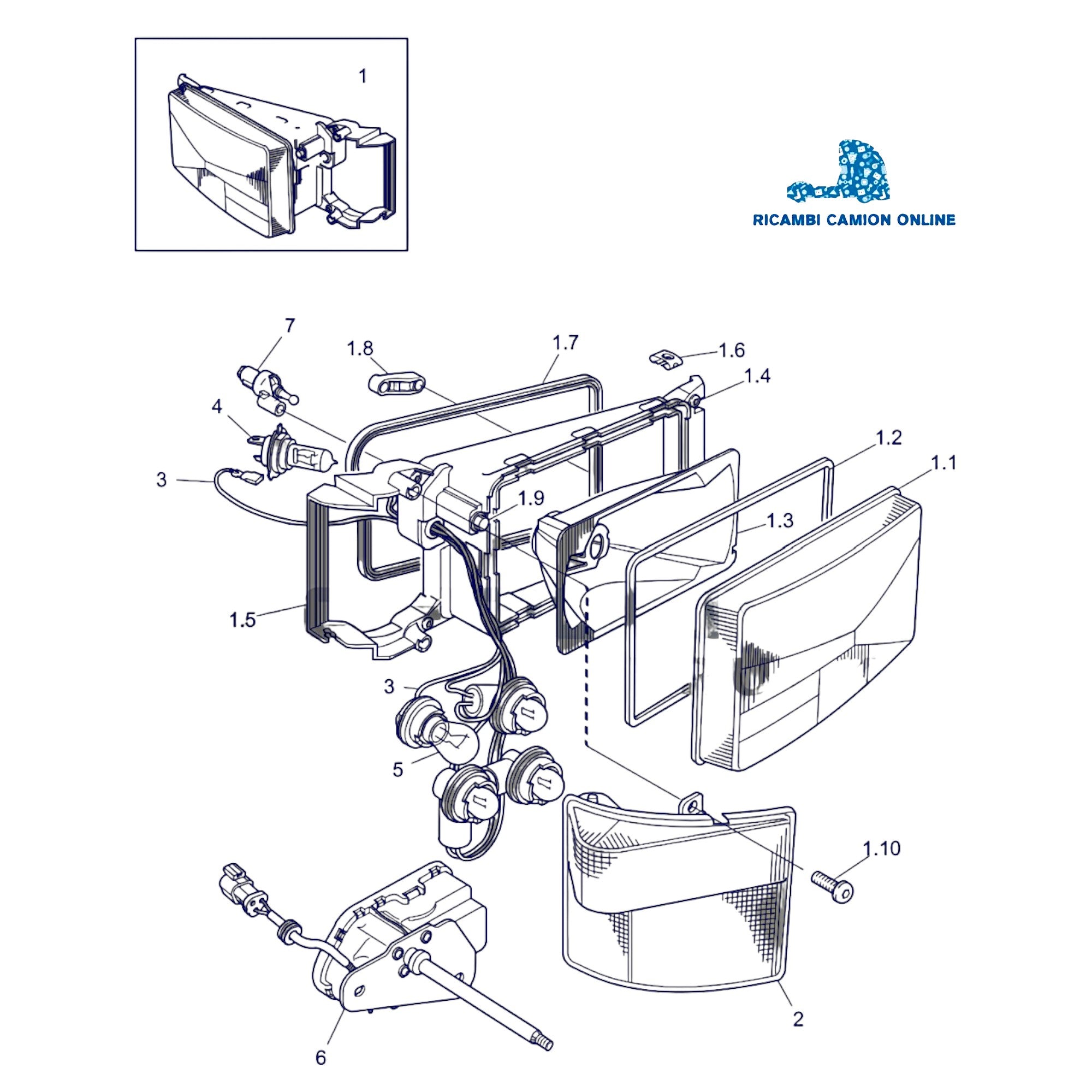 MDPR0177 PROIETTORE ANTERIORE SCANIA SERIE 4 P94 P114 P124 144 164 DA 1994 A 2008 SERIE R DA 2003 AL 2018
