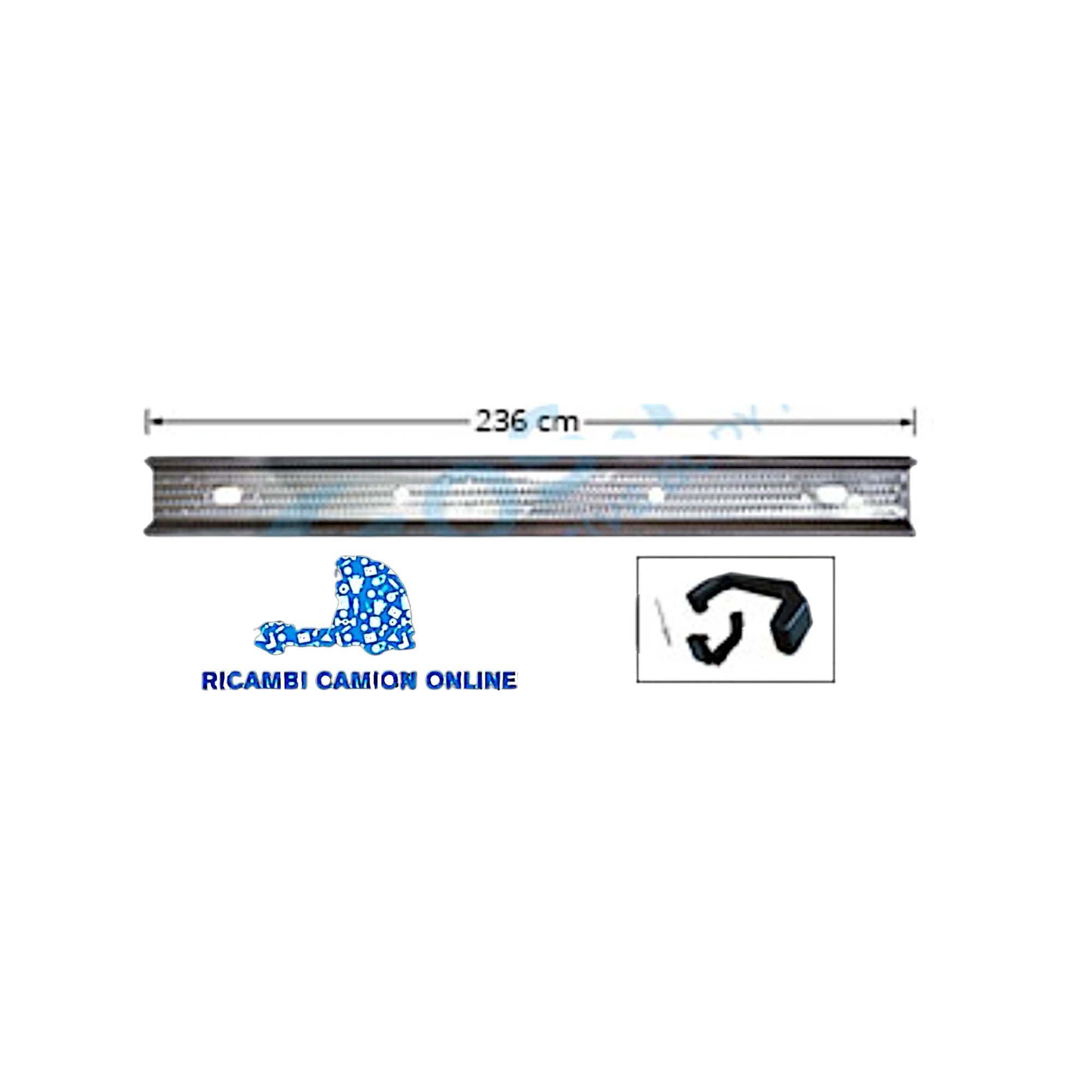 400.02402 BARRA PORTAFANALI POSTERIORI ACCIAIO INOX UNIVERSALE LUNGHEZZA 236.5 CM RIMORCHI SEMIRIMORCHI